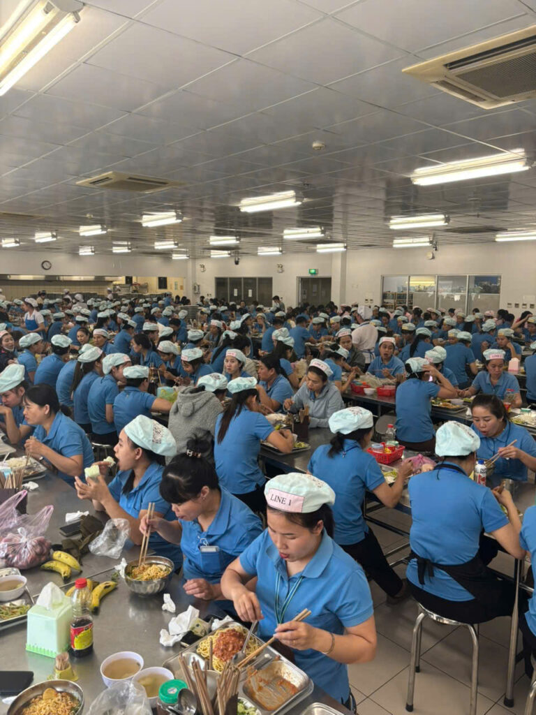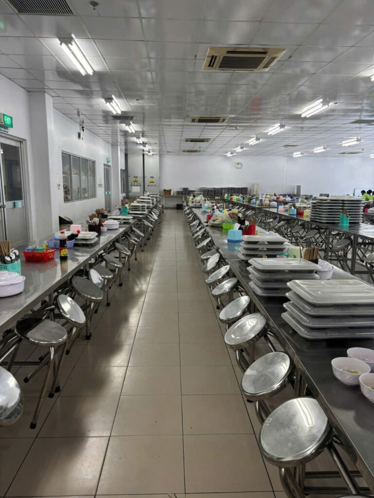 Bữa ăn của công nhân luôn được MSV chăm chút kỹ lưỡng. Nhà ăn của công ty vô cùng rộng rãi, trang bị bàn ghế inox sáng bóng, khay đựng thức ăn được xếp ngay ngắn và đặc biệt là không gian cực kỳ sạch sẽ. Các bạn công nhân như Thùy Xương và Phương Điệp đều rất hài lòng, đánh giá cao sự sạch sẽ của nhà ăn, thức ăn rất hợp khẩu vị và thực đơn thì luôn được đổi món mỗi ngày để mang lại sự ngon miệng.