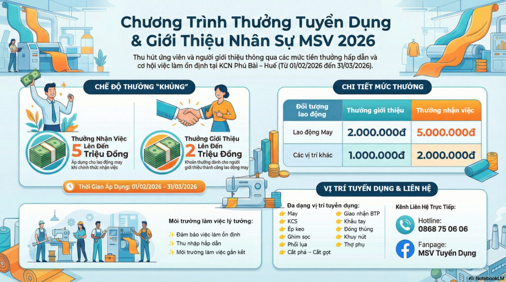 🎁 Thưởng giới thiệu công nhân vào làm việc tại MSV:
